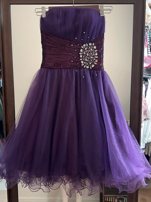 Strapless Purple A Line Homecoming Dress Retro Party Dress J10231