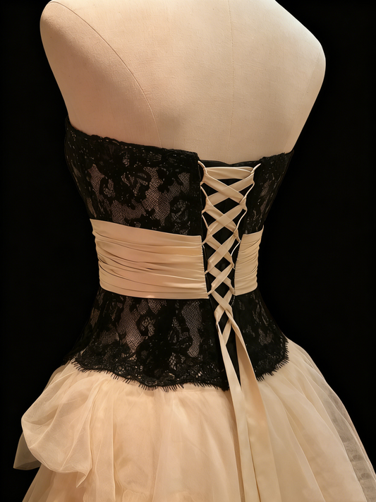 Strapless Champagne Layered Tulle Prom Dress A Line Formal Dress J9596