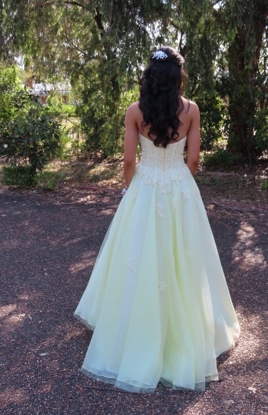 Strapless A Line Yellow Prom Dress Tulle Evening Dress J9355