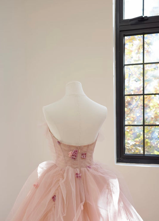 A Line Tulle Pink Birthday Dress Sweet Formal Prom Dress J6325