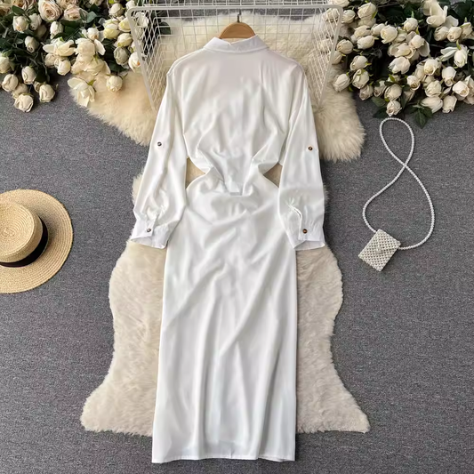 White Shirt Dress Women Spring and Autumn Elegant Long Skirt 1264