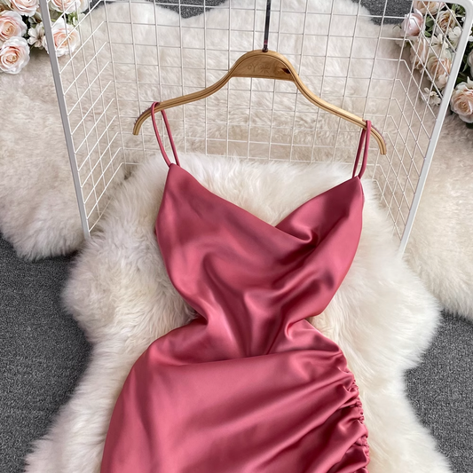 V-neck Spaghetti Strap Summer Dress Short Evening Dress A-line Dress 989