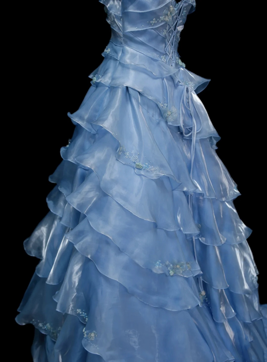 Ruffled Halter Blue Prom Dress Layered Ball Gown Princess Birthday Dress J9607