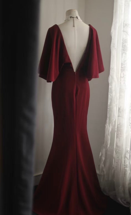 Modest Burgundy Long Evening Dress Formal Party Dress J8885