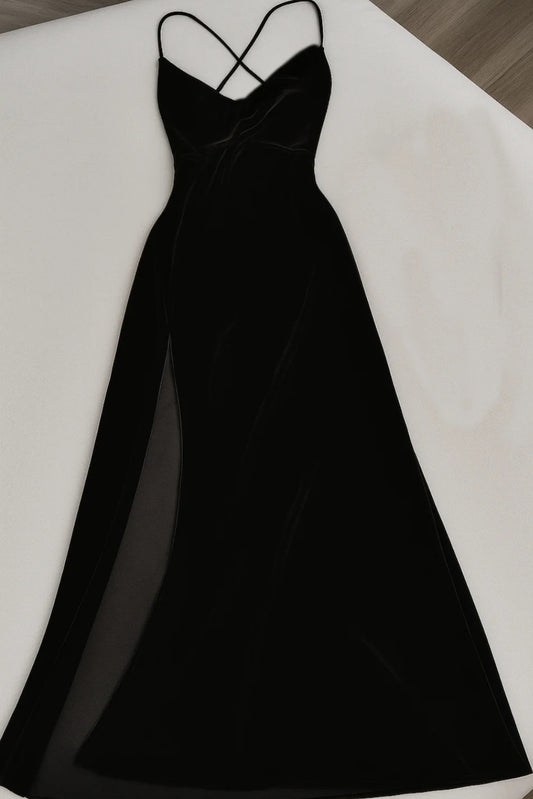 Black Velvet Sexy Prom Dress With Slit Formal Evening Party Dress J8889