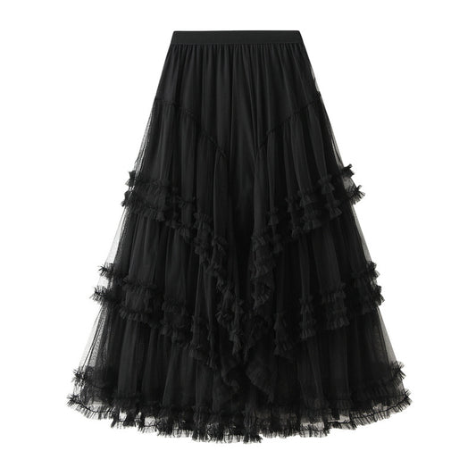 Irregular Mesh Cake Skirt Mid-length High Waist Fluffy Fairy Skirt 749