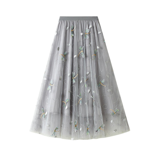 3D Embroidered Dragonfly Mesh Skirt French High Waist Skirt 745