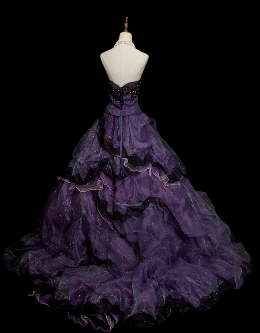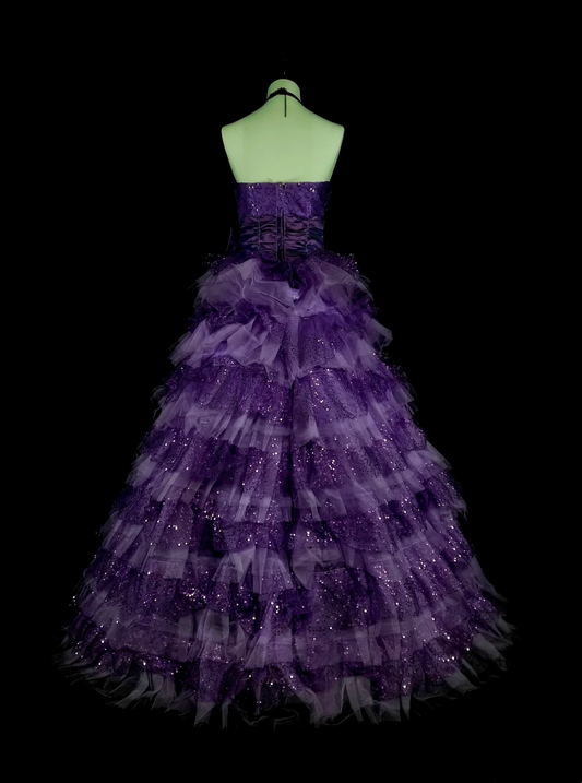 Sweet 16 Strapless Purple Ball Gown Layered Quinceanera Dresses J9468