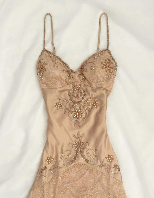 Champagne Beaded Vintage Prom Dress Formal Evening Dress Birthday Gown J9223