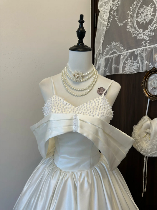 Off The Shoulder White Wedding Dress With Pearl Elegant Bridal Gowns J9445