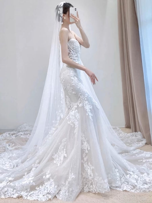 Off The Shoulder Mermaid White Lace Wedding Dress J3234