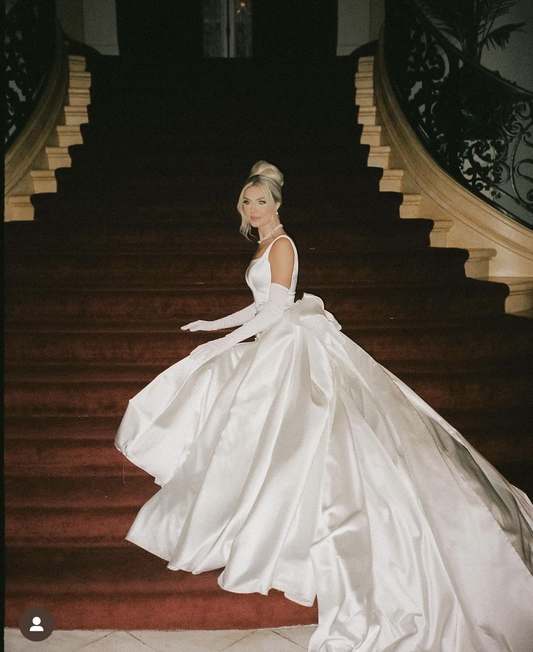 A Line White Elegant Wedding Dress Bow Knot Bridal Dress J8230
