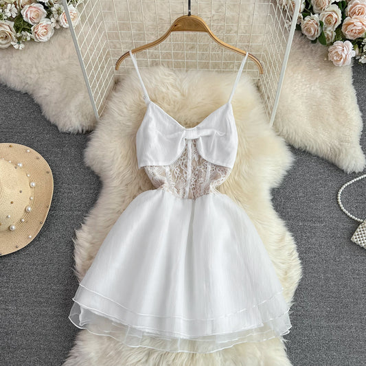 Summer French Bowknot Lace A-line Fluffy Dress Skirt for Women 278