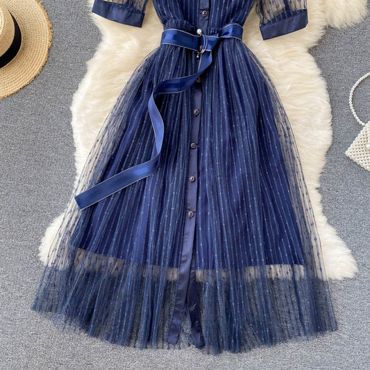 Mesh Dress POLO Collar Mid-length Women's Dress 282
