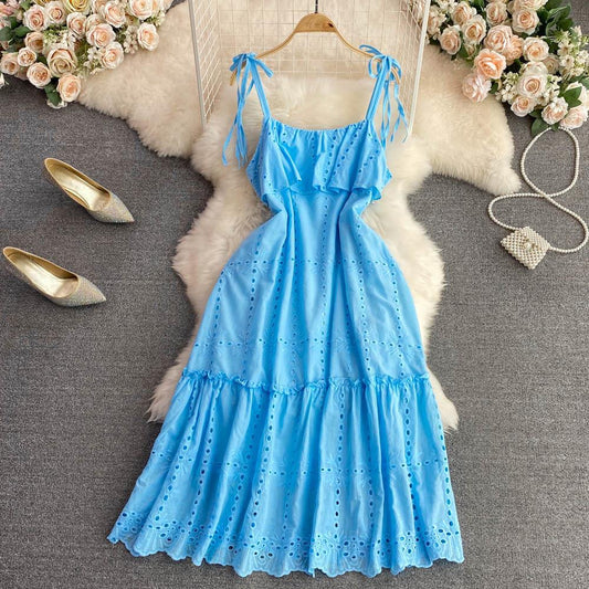 Spaghetti Strap Backless Tie Seaside Beach Midi Dress 251