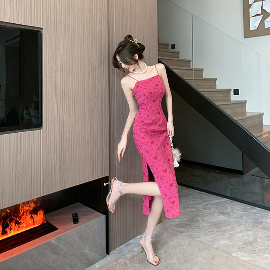 Rose Red Suspender Dress Women's Summer 2023 French Seaside Holiday Dress 67