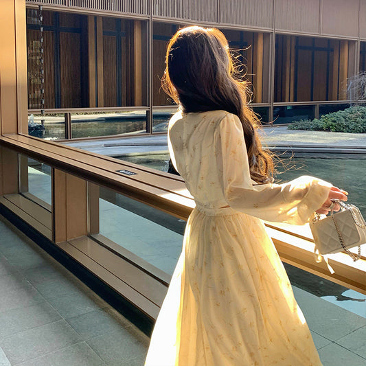 Summer French V-neck Dress Fairy Puff Sleeve Long Dress for Women 68