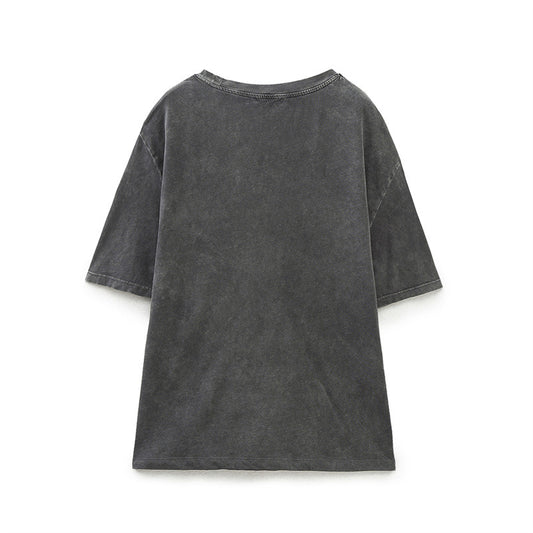 Summer Loose Print Round Neck Short Sleeves T-shirt 1479