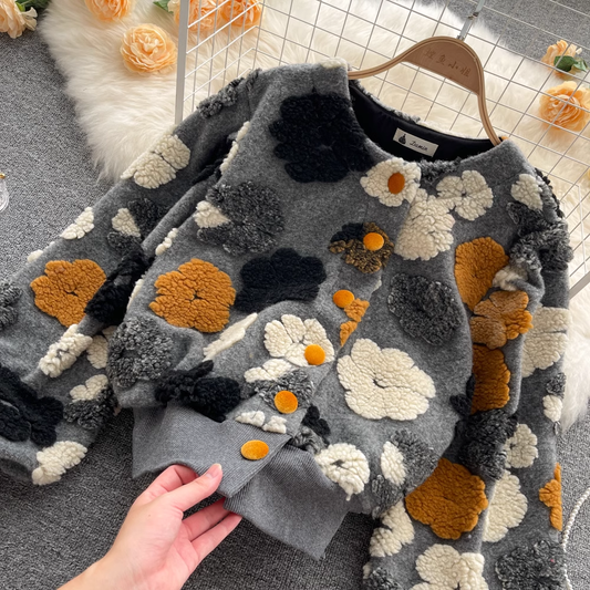 Autumn and Winter Retro 3D Flower Cardigan Short Jacket 1870