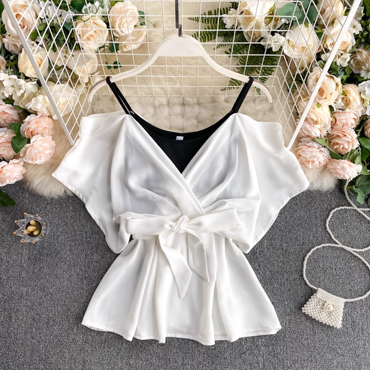 Spaghetti Strap Off The Shoulder Ruffle Top Summer Chiffon Top 1018