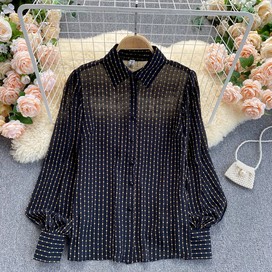 Chiffon Long-sleeved Shirt French Retro Loose Polka Dot Top 1025