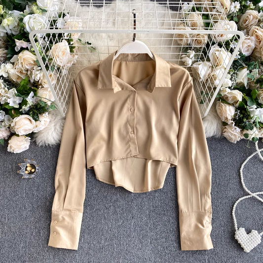 Autumn long sleeves women shirt short top 1021