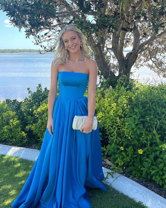 Trägerloses A-Linie Satin Langes Ballkleid Formales Partykleid J3065