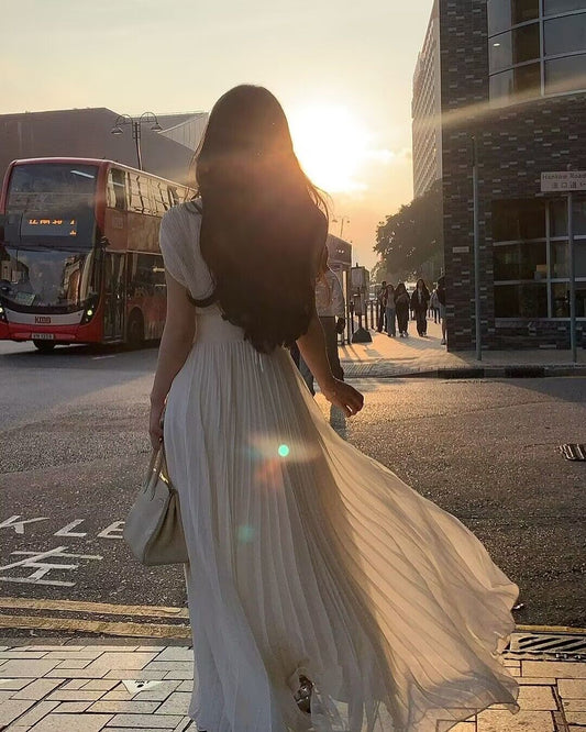 V-Ausschnitt A-Linie Weiß Chiffon Langes Ballkleid J2778