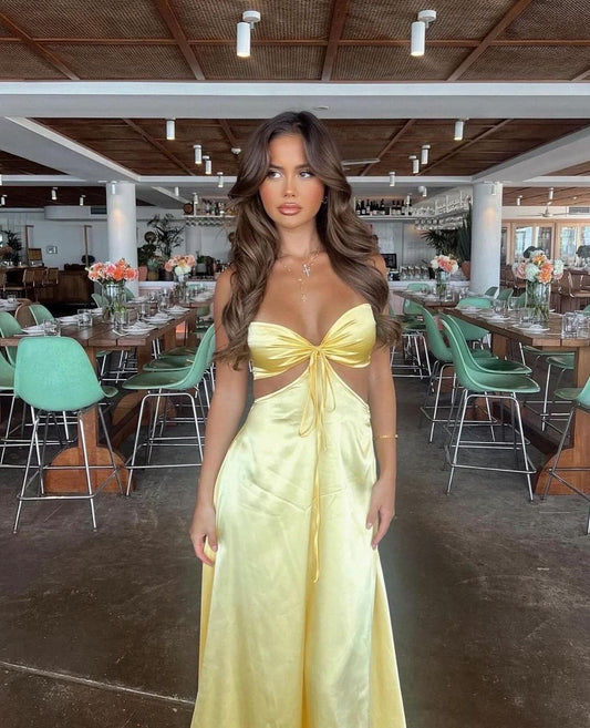 Spaghettiträger Gelb A-Linie Langes Ballkleid J2701