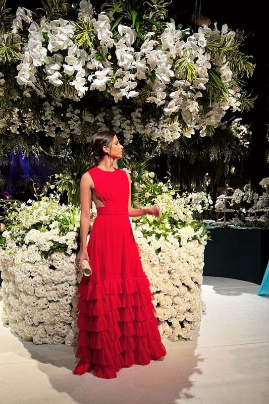 Rotes A-Linien-Ballkleid mit Stufen, lang, formelles Partykleid 2301
