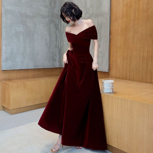 One-Shoulder-Burgund-langes Abschlussball-Kleid-Schnür-Abend-Kleid 20