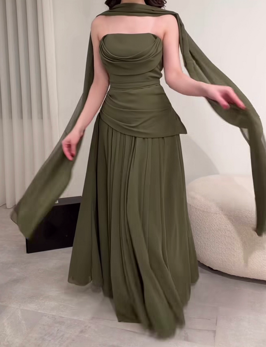 Spaghettiträger A-Linie Rüschen Langes Ballkleid J2846