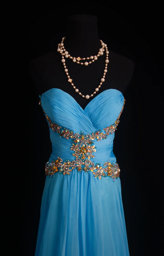 Trägerloses silbernes Vintage-Abendkleid, A-Linie, Geburtstagskleid J9370