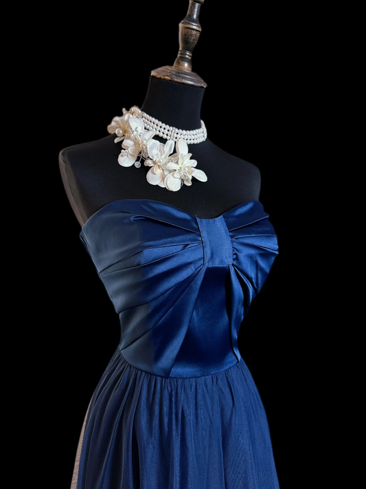 Trägerloses silbernes Vintage-Abendkleid, A-Linie, Geburtstagskleid J9370