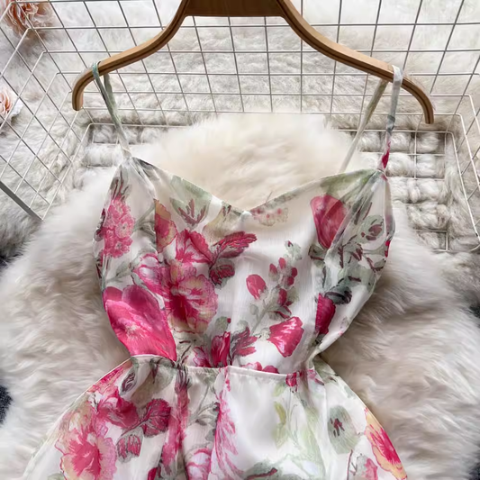 Damen Retro-Blumenkleid, rückenfrei, Schleife, Knoten, Sling-Kleid, Sommer 1158