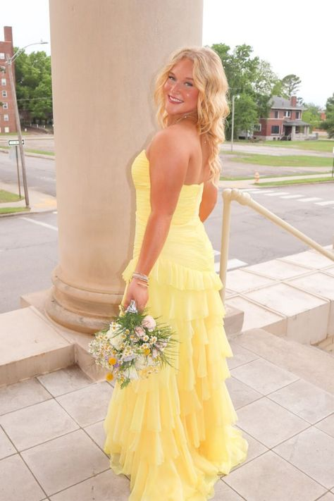 Gelbe Rüschen Ballkleider Abend Party Kleider J5418
