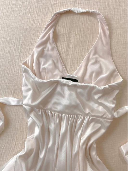 Neckholder A-Linie Satin Kurzes Partykleid Elfenbein Homecoming-Kleid J8441