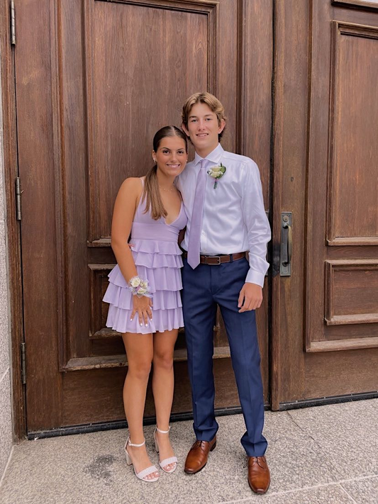 Spaghettiträger Lavendel Mini Homecoming Kleid Kurzes Partykleid J8303