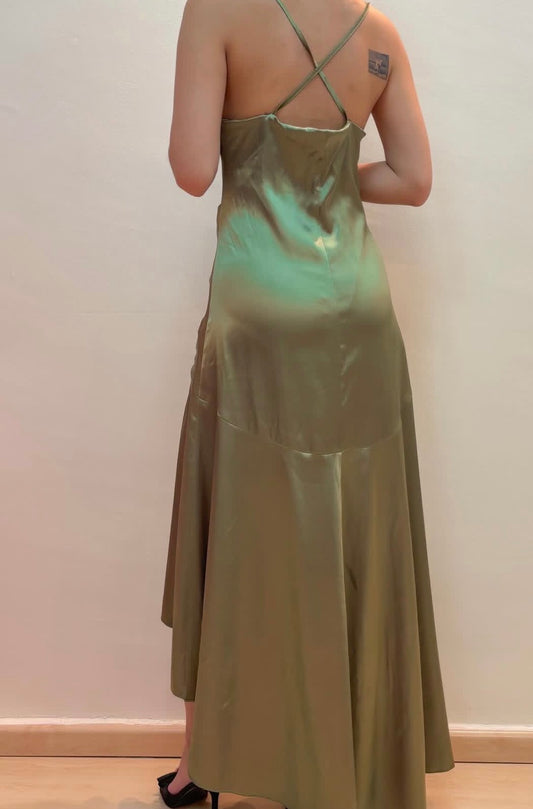 Rosa Etuikleid, lang, mit Seitenschlitz, Satin, formelles Kleid J8820