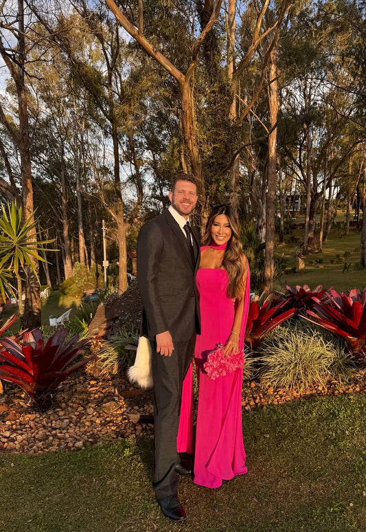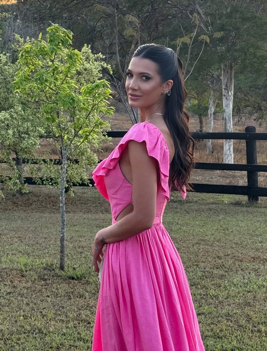 Hot Pink Chiffon Formales Partykleid Rückenfreies Hochzeitsgastkleid J7018
