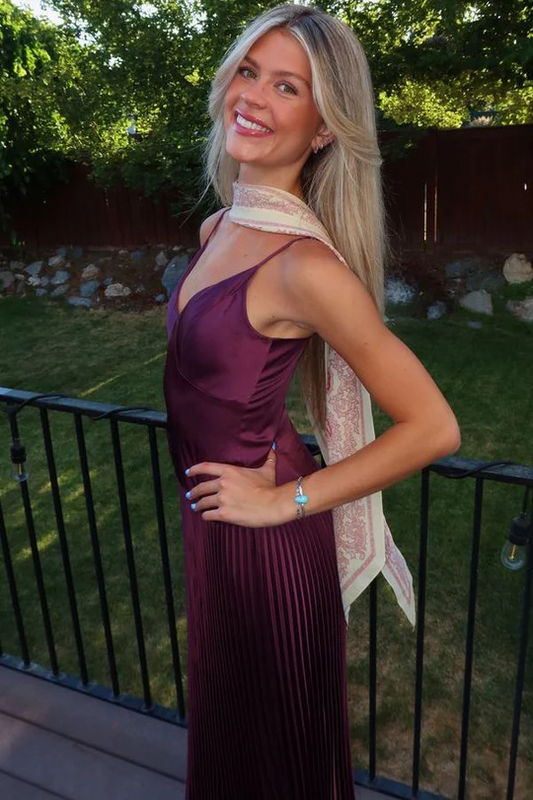 Spaghettiträger V-Ausschnitt Langes Ballkleid Rüschen Hochzeitsgastkleid J8361
