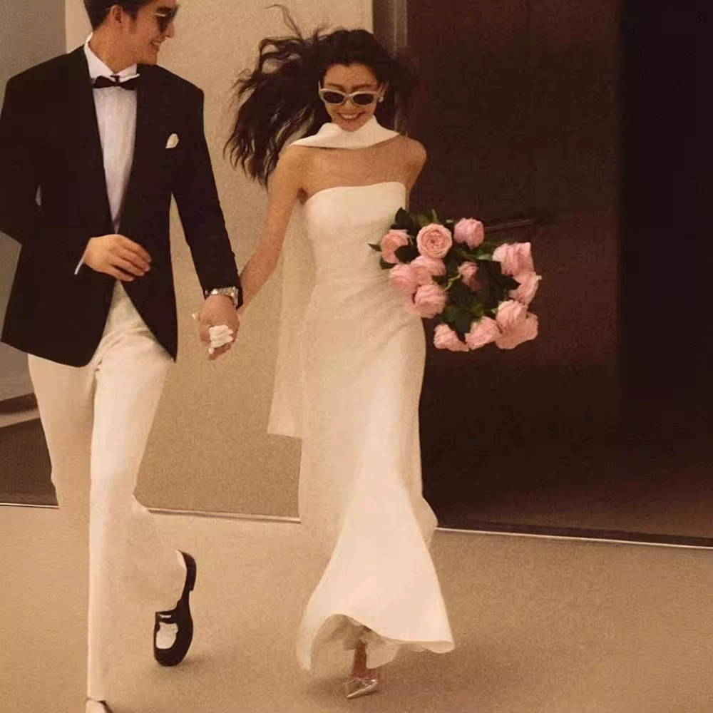 Meerjungfrau Trägerloses Weißes Abendkleid Einfaches Brautkleid J6370