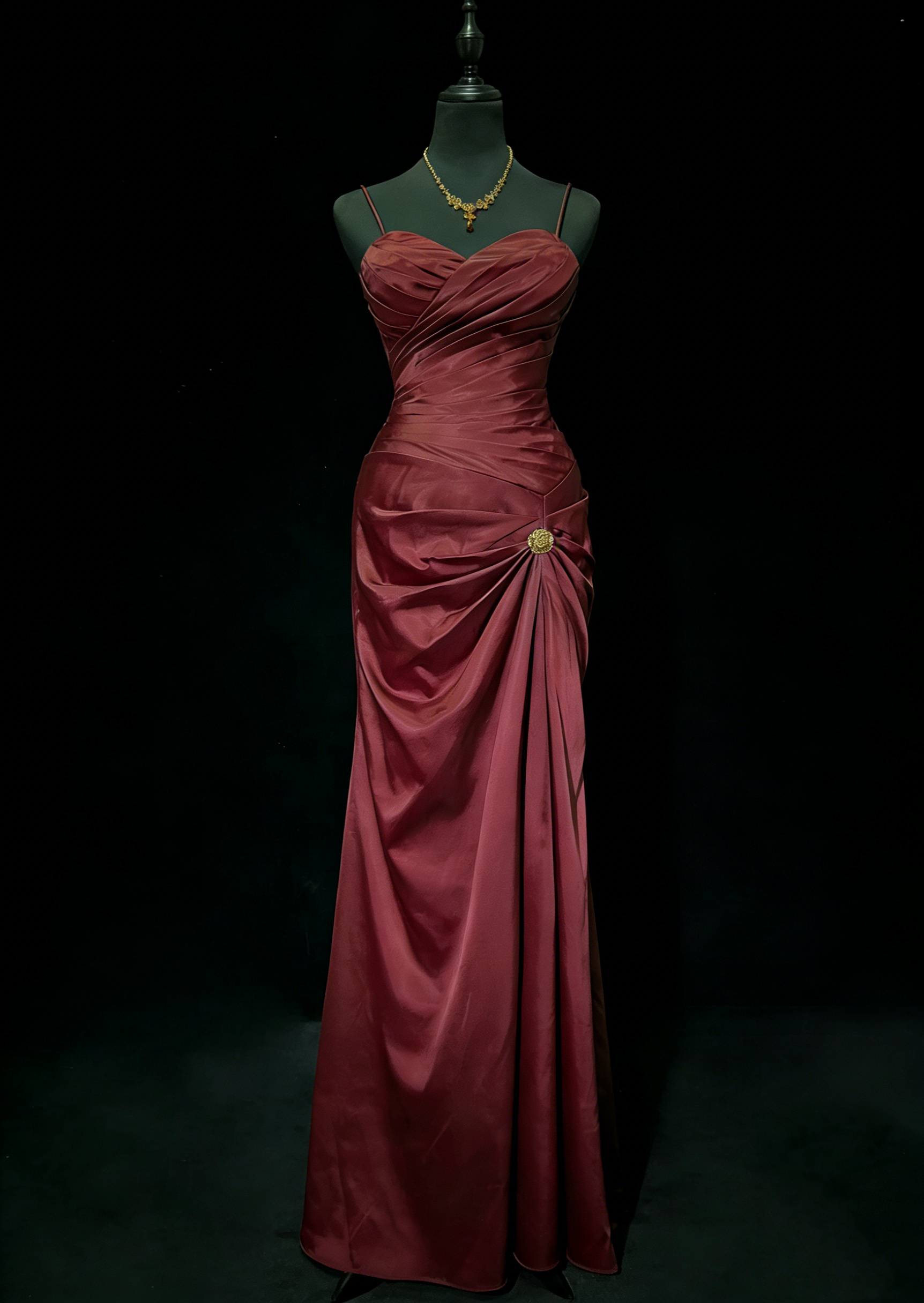 Spaghettiträger Rot Langes Ballkleid Etui Abendkleid 2451