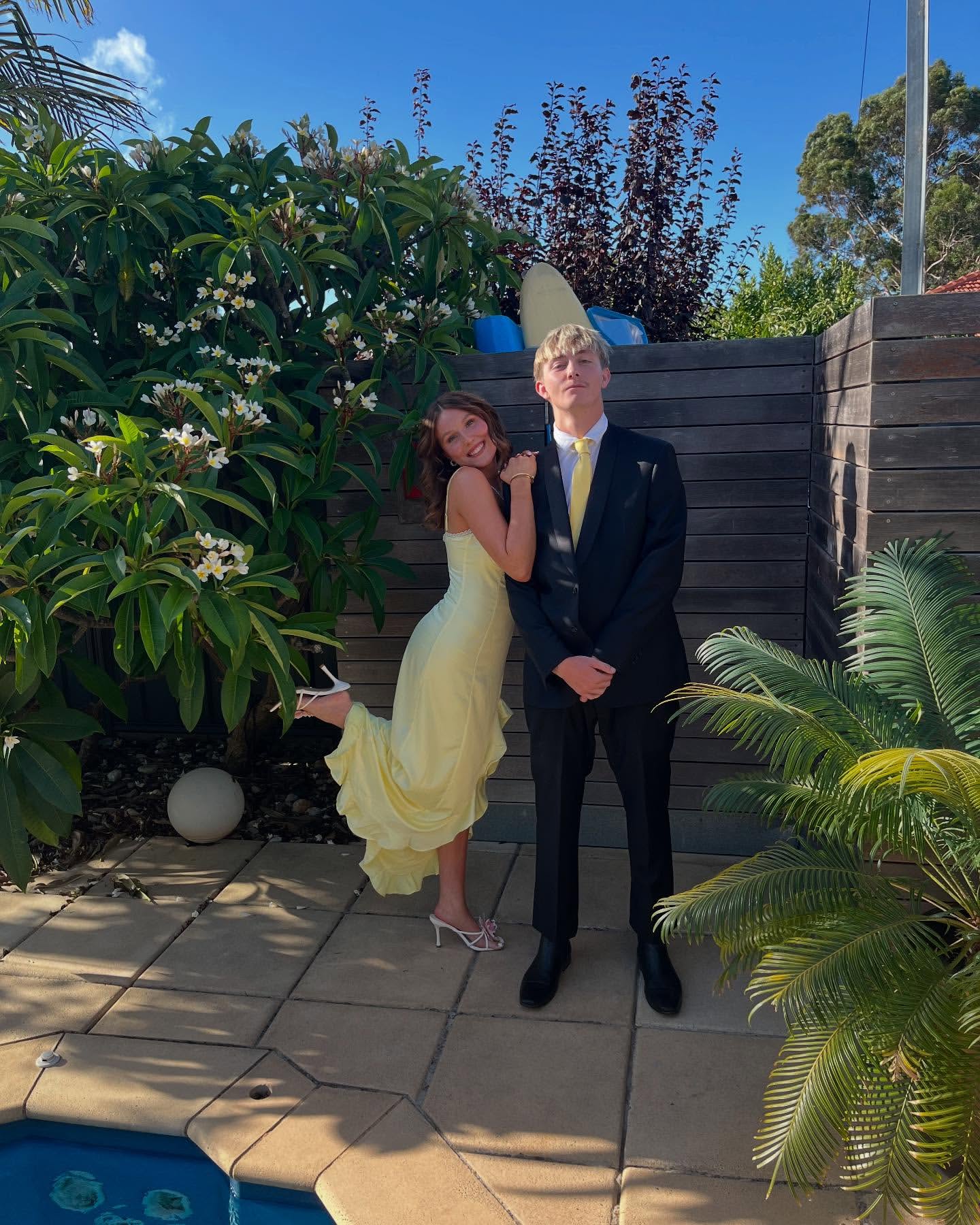 Gelbes Ballkleid mit Spaghettiträgern und Rüschen für Hochzeitsgäste J6939