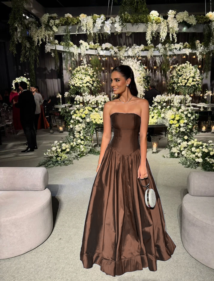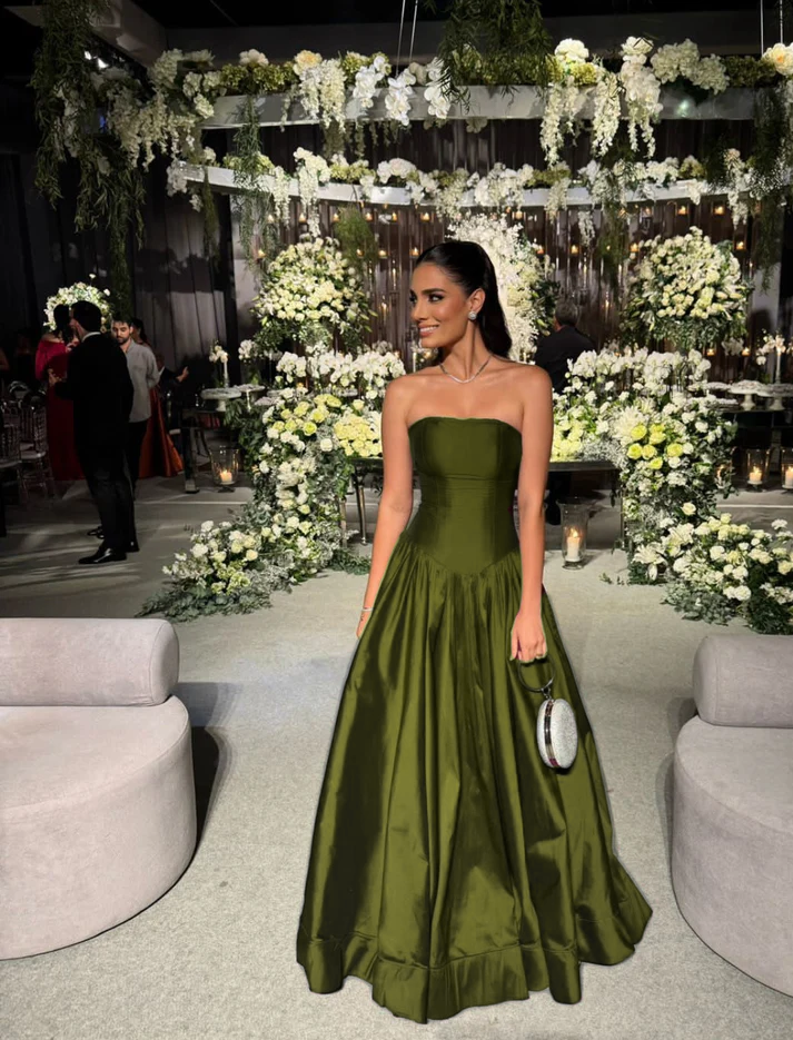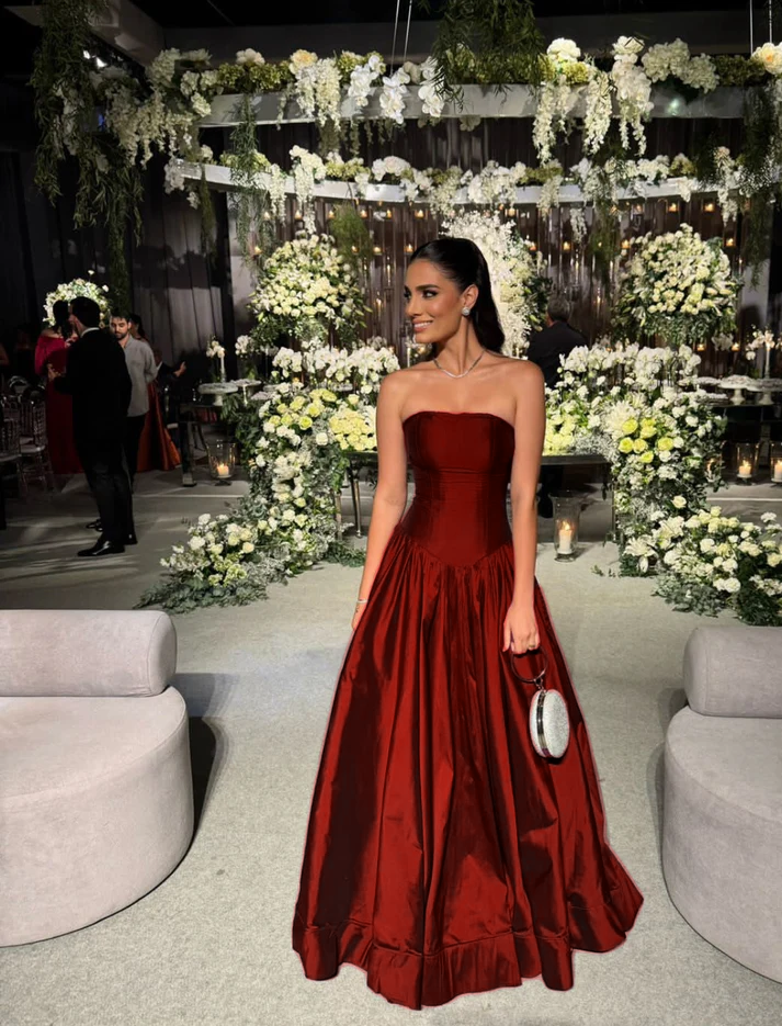 Trägerloses A-Linien-Ballkleid in Rosa, lang, plissiert, formelles Partykleid J4144