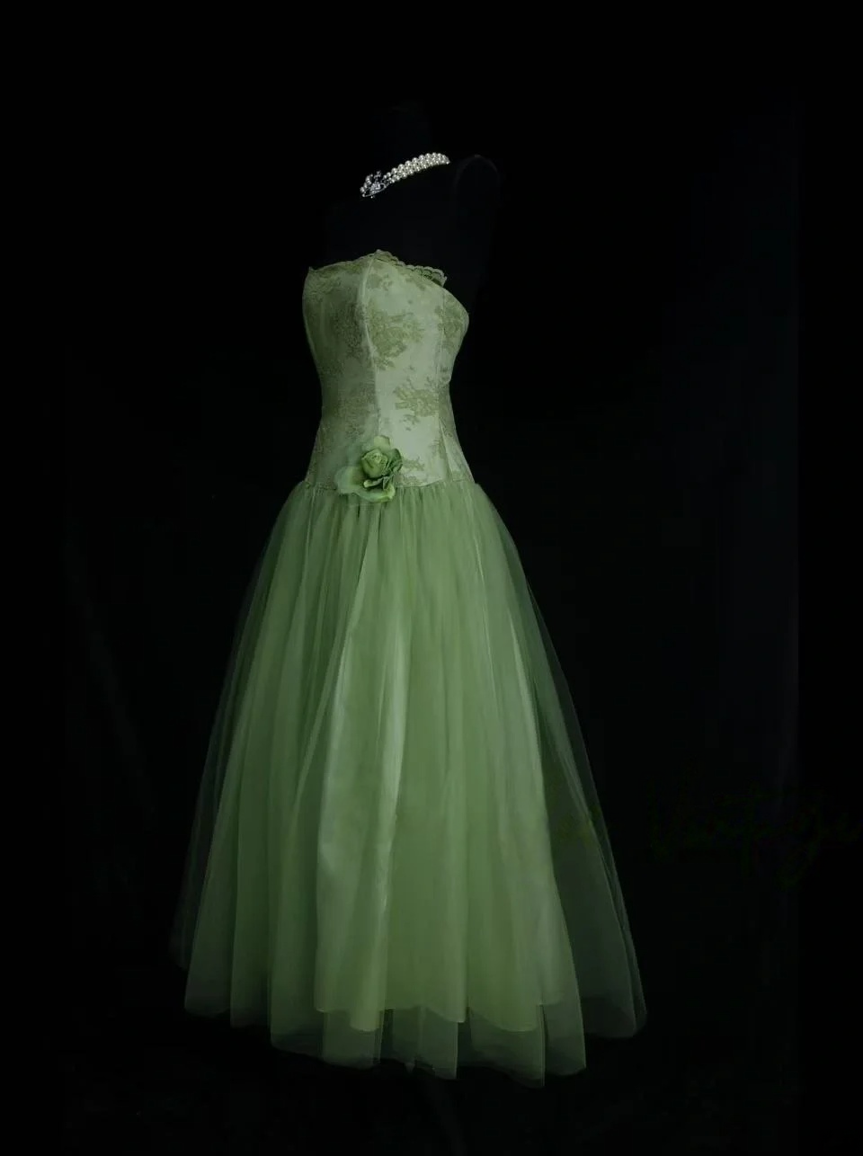 Trägerloses silbernes Vintage-Abendkleid, A-Linie, Geburtstagskleid J9370