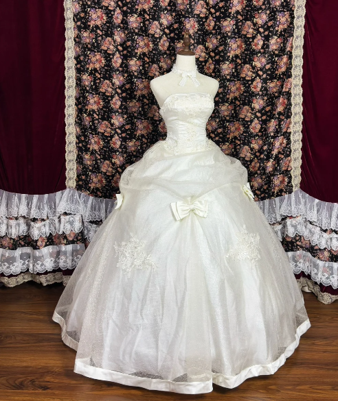 Trägerloses weißes Geburtstagskleid in A-Linie, süßes Hochzeitskleid J8632