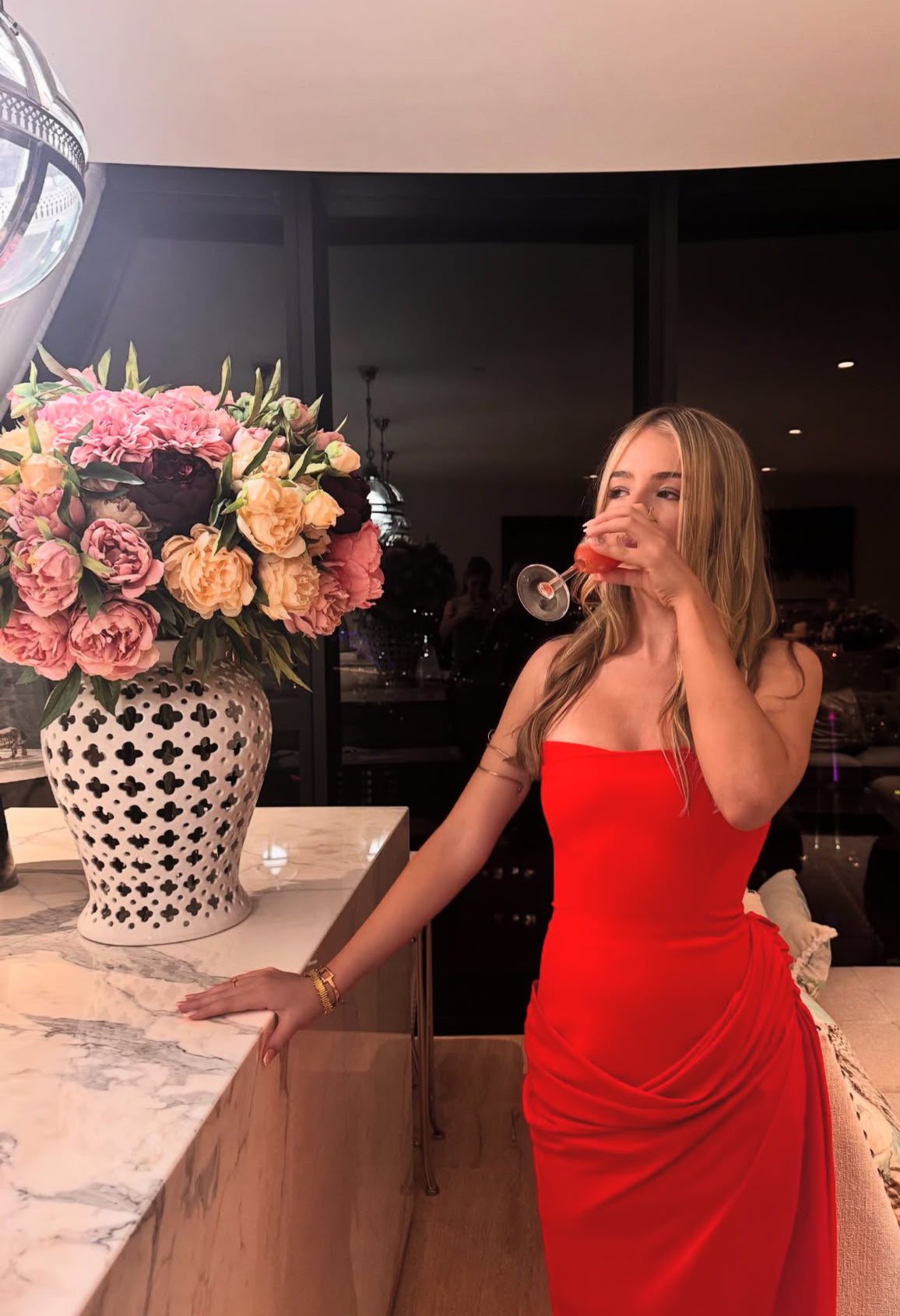 Trägerloses rotes Etuikleid, langes Ballkleid, Geburtstagsoutfit J7824