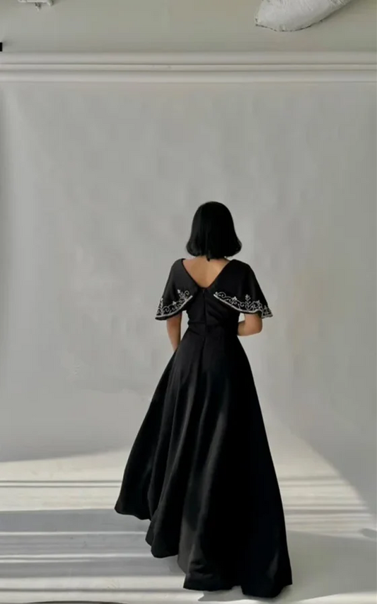 Black A line beaded Long Prom Dress Evening Dress J8794