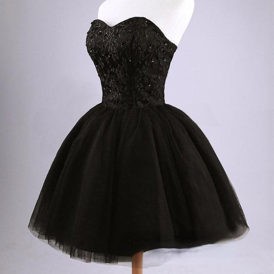 Black Sleeveless A Line Homecoming Dress Mesh Short Formal Dress 1567